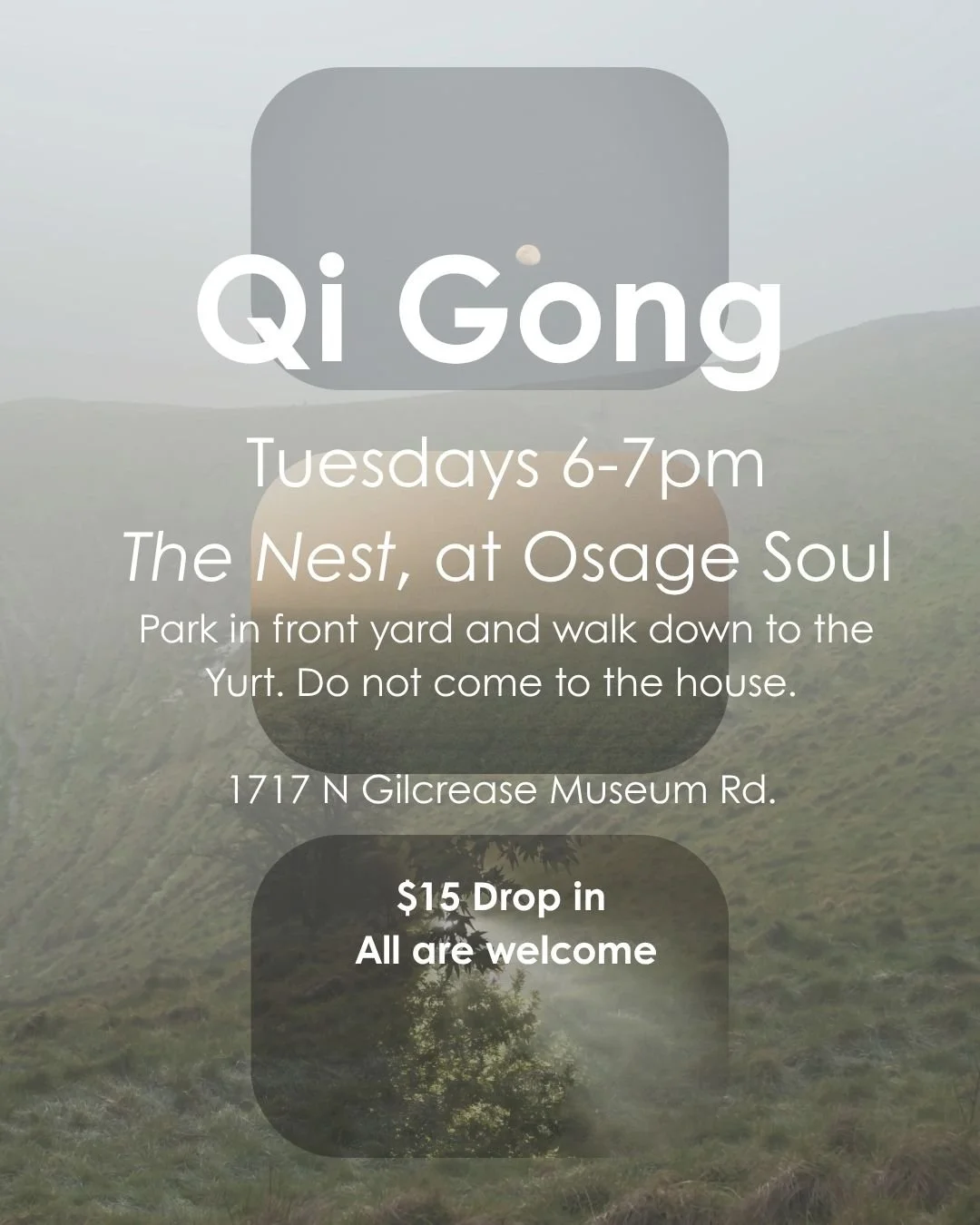 Establish your practice within community. Flow through joint mobility, purging, toning and regulating forms with a themed focus. Ask questions, and fine-tune your personal practice within the context of the group.